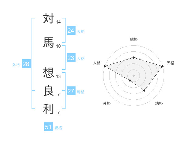 対馬 想良利さんを姓名の画数から五運を鑑定