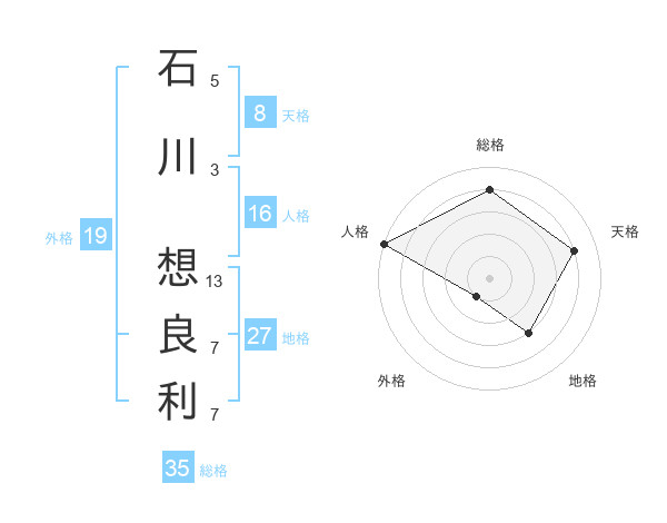 石川 想良利さんの総格は35画の4点