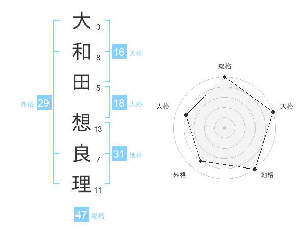 大和田 想良理さんを姓名の画数から五運を鑑定