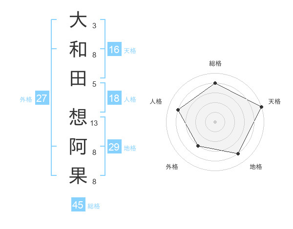 大和田 想阿果さんを姓名の画数から五運を鑑定