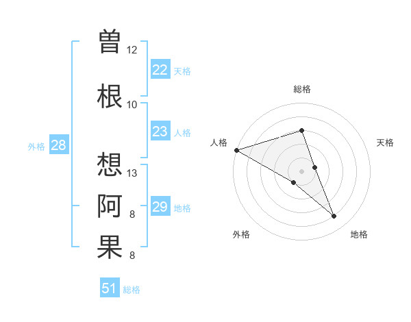 曽根 想阿果さんの総格は51画の3点!