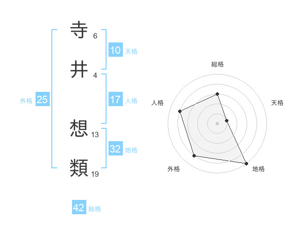 寺井 想類さんの総格は42画の3点!
