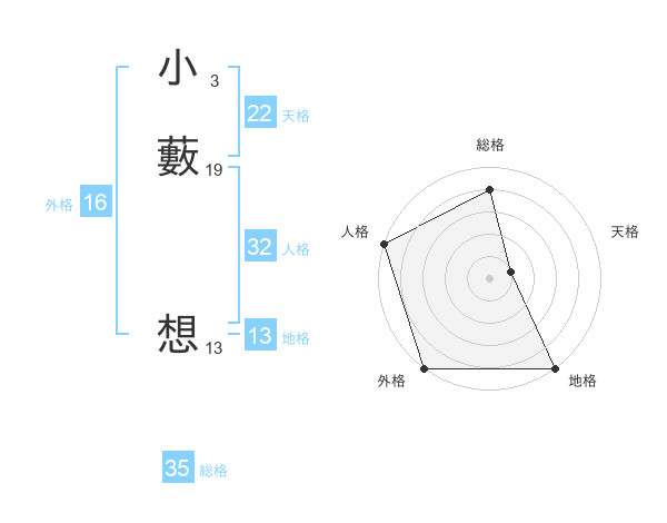 小藪 想さんの外格は16画の5点!