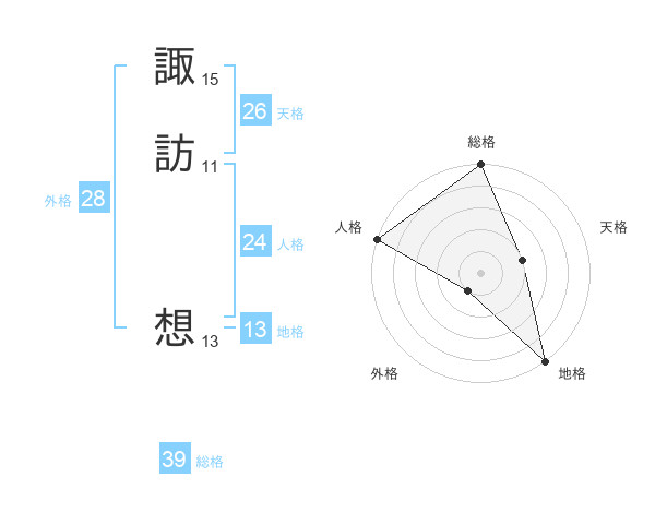 諏訪 想さんの総格は39画の5点!
