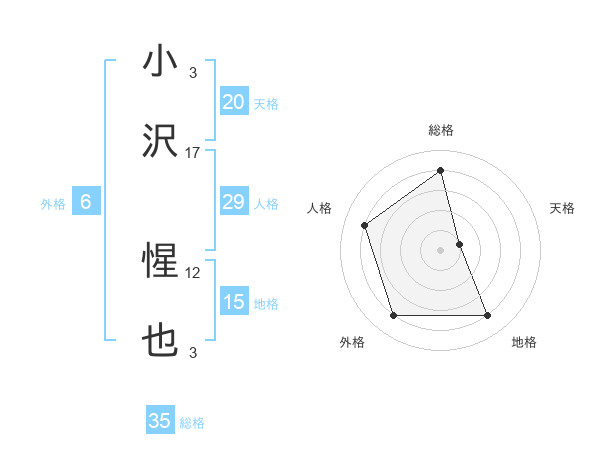 小沢 惺也さんの総格は35画の4点!