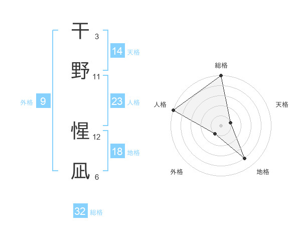 干野 惺凪さんの総格は32画の5点!