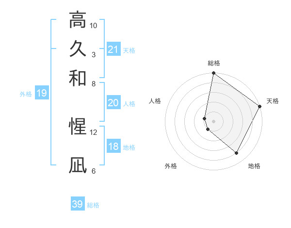 高久和 惺凪さんの天格は21画の5点!