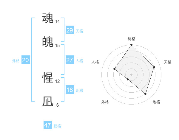 魂魄 惺凪さんの総格は47画の5点!