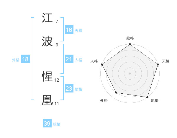 江波 惺凰さんの総格は39画の5点!