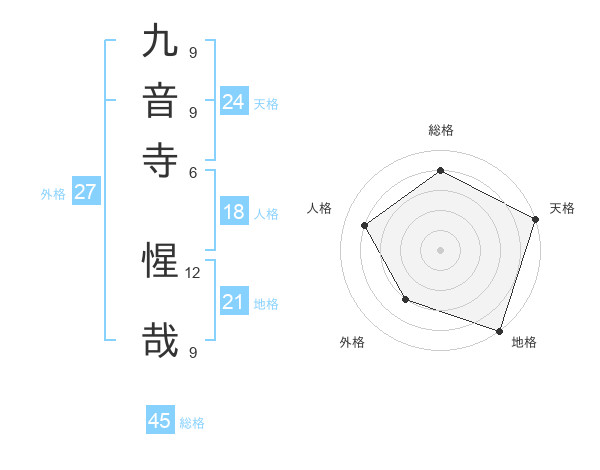 九音寺 惺哉さんの総格は45画の4点!