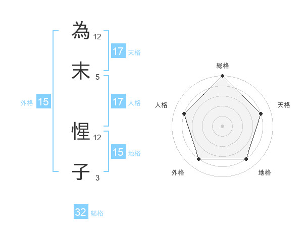 為末 惺子さんの外格は15画の4点!