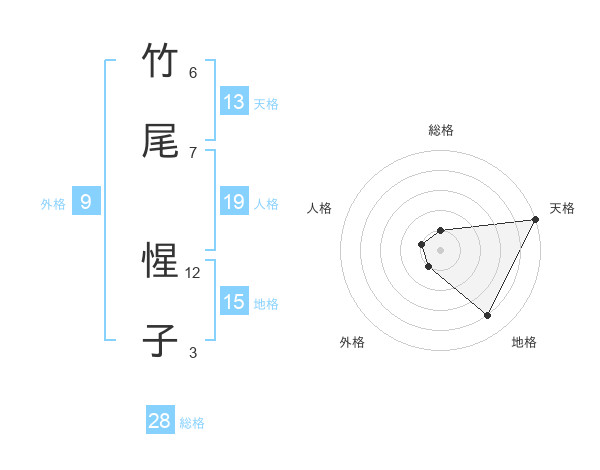 竹尾 惺子さんの天格は13画の5点!