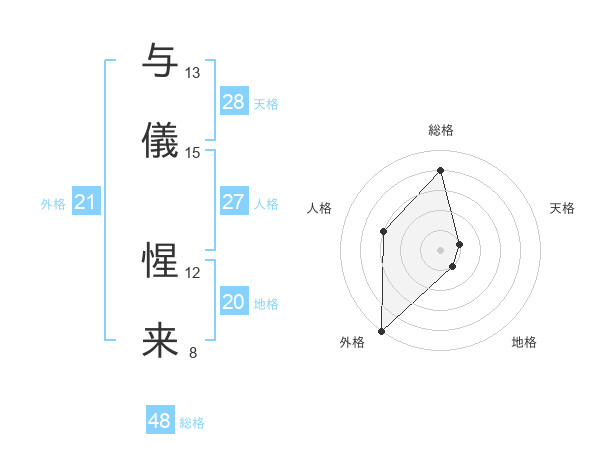 与儀 惺来さんを姓名の画数から五運を鑑定