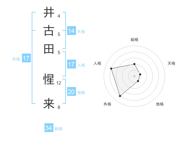 井古田 惺来さんを姓名の画数から五運を鑑定