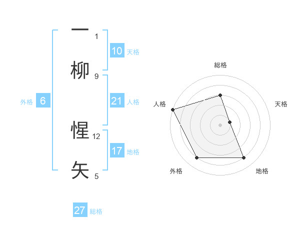 一柳 惺矢さんを姓名の画数から五運を鑑定