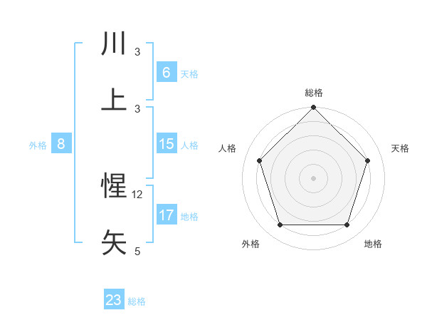 川上 惺矢さんを姓名の画数から五運を鑑定