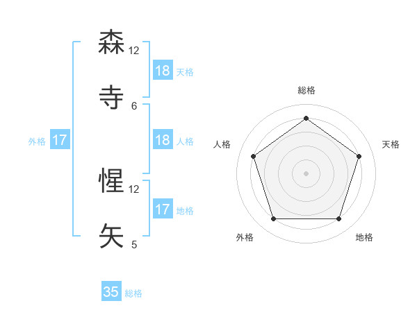 森寺 惺矢さんの総格は35画の4点!