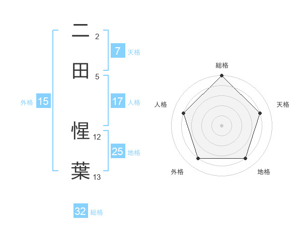 二田 惺葉さんを姓名の画数から五運を鑑定