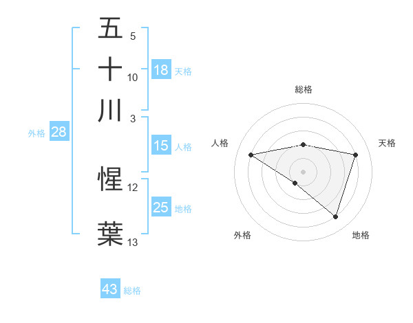 五十川 惺葉さんを姓名の画数から五運を鑑定