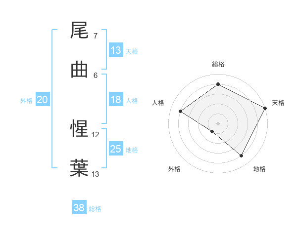 尾曲 惺葉さんの天格は13画の5点!