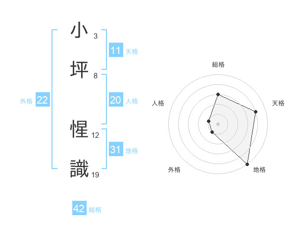 小坪 惺識さんの外格は22画の1点!