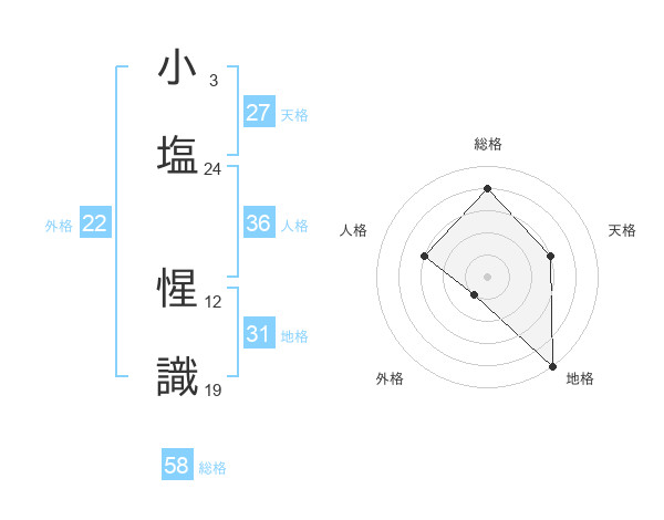 小塩 惺識さんの総格は58画の4点!