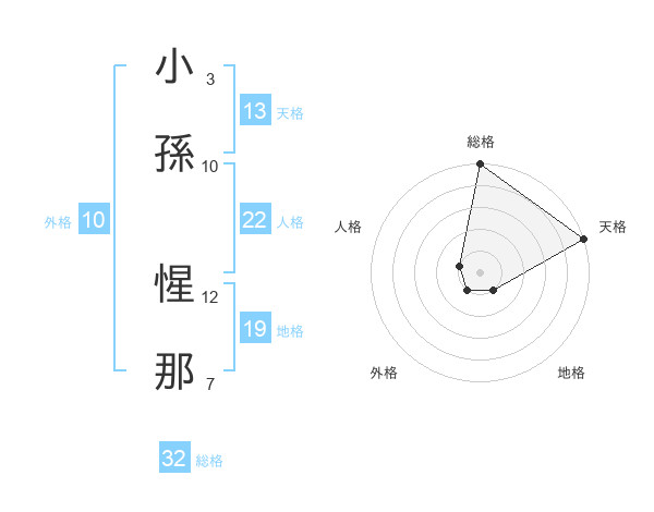 小孫 惺那さんの総格は32画の5点!