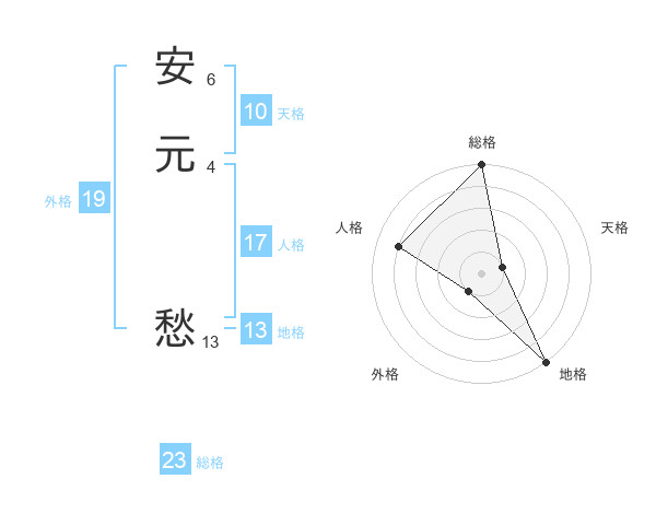 安元 愁さんの地格は13画の5点!