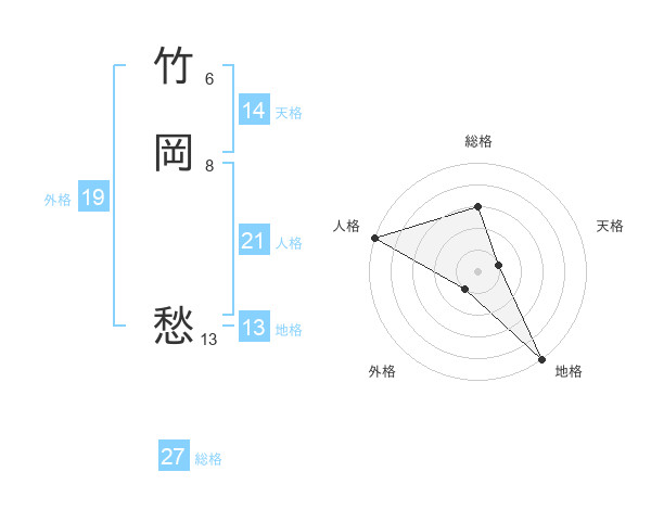 竹岡 愁さんを姓名の画数から五運を鑑定