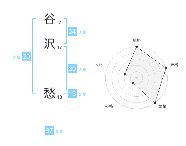 谷沢 愁さんの総格は37画の5点!