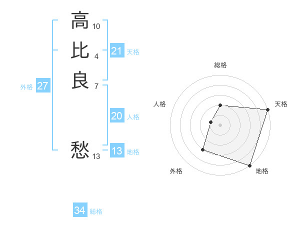 高比良 愁さんの天格は21画の5点!