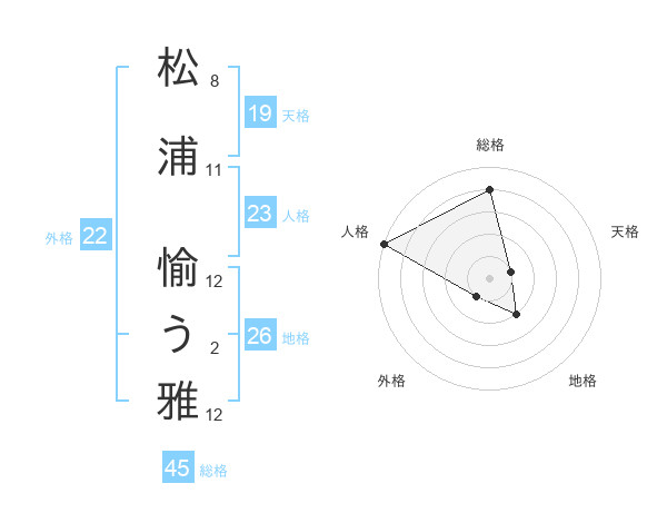 松浦 愉う雅さんを姓名の画数から五運を鑑定