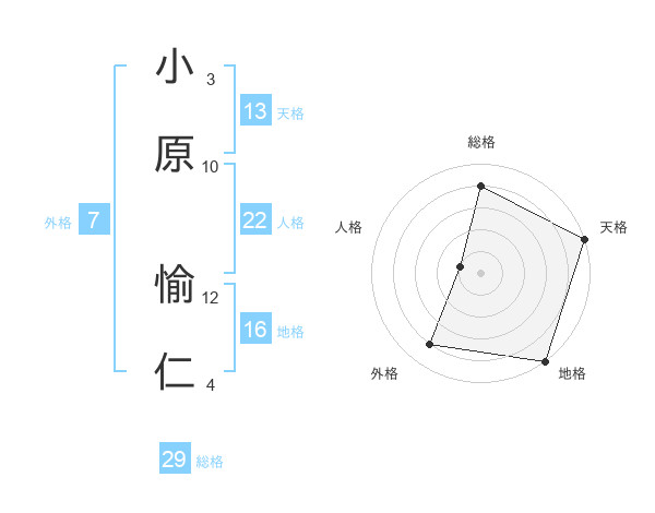 小原 愉仁さんを姓名の画数から五運を鑑定