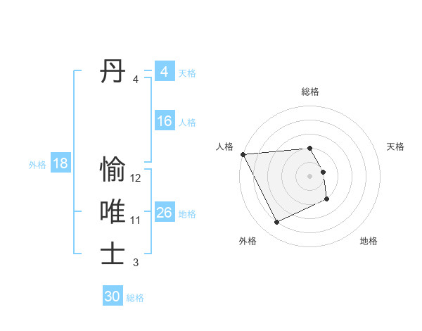 丹 愉唯士さんの総格は30画の2点!
