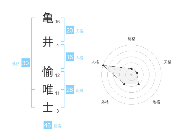 亀井 愉唯士さんを姓名の画数から五運を鑑定