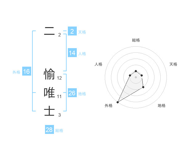 二 愉唯士さんの外格は16画の5点!
