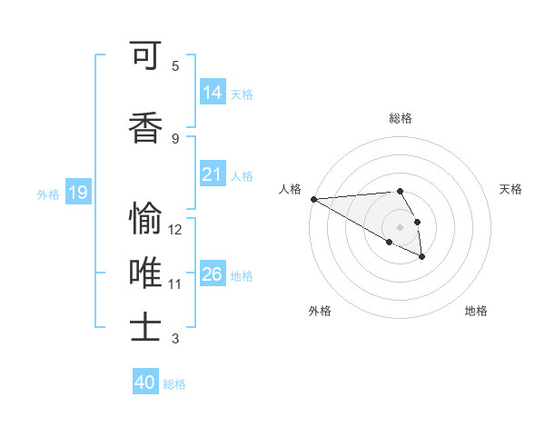 可香 愉唯士さんを姓名の画数から五運を鑑定