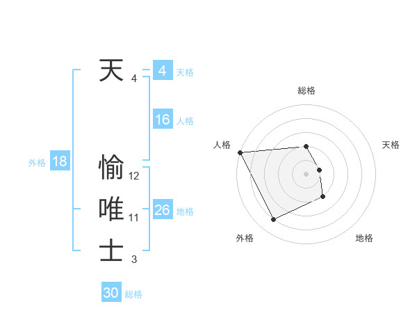 天 愉唯士さんを姓名の画数から五運を鑑定