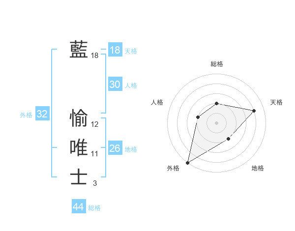 藍 愉唯士さんを姓名の画数から五運を鑑定