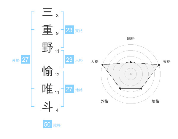 三重野 愉唯斗さんの総格は50画の2点