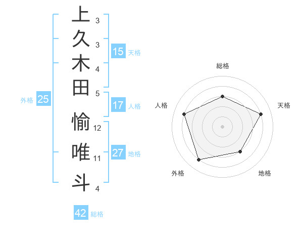 上久木田 愉唯斗さんの地格は27画の3点!