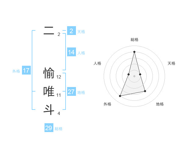 二 愉唯斗さんの外格は17画の4点!