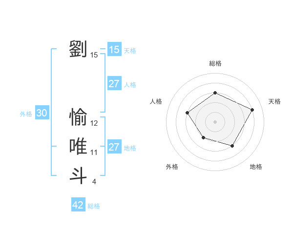 劉 愉唯斗さんを姓名の画数から五運を鑑定