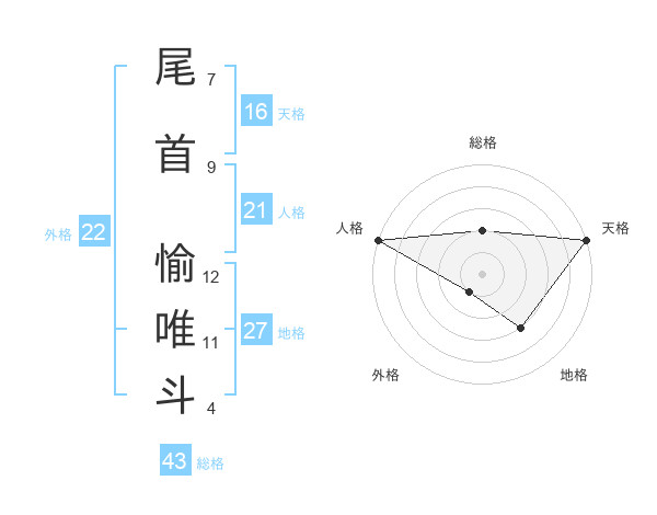 尾首 愉唯斗さんの外格は22画の1点!