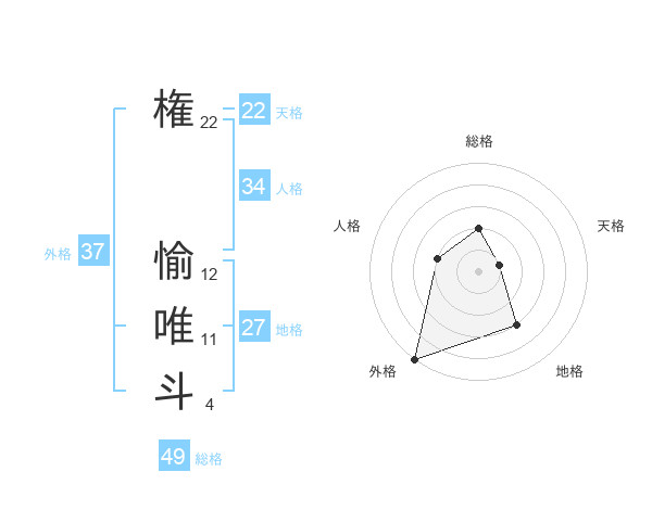 権 愉唯斗さんを姓名の画数から五運を鑑定