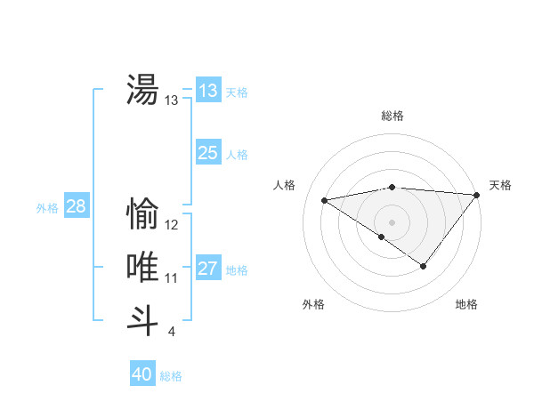 湯 愉唯斗さんの天格は13画の5点!