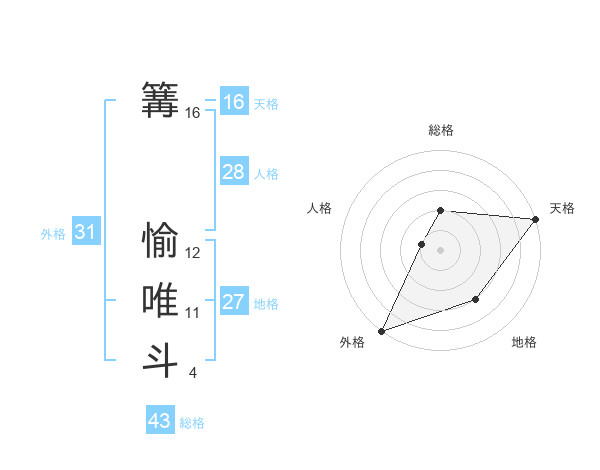 篝 愉唯斗さんの外格は31画の5点!