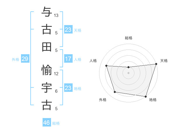 与古田 愉宇古さんを姓名の画数から五運を鑑定