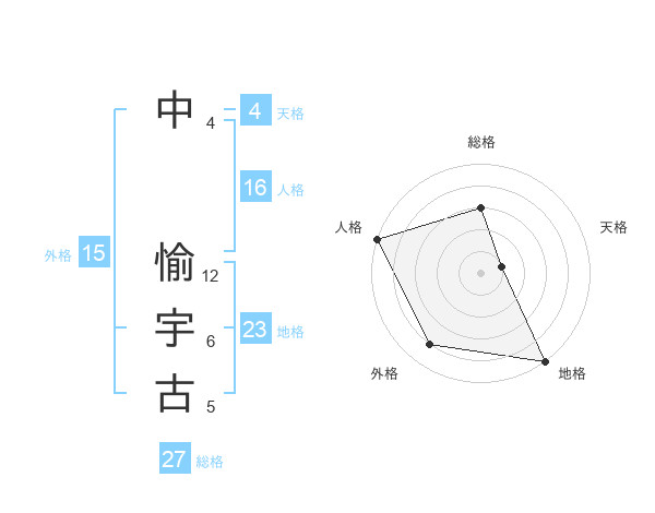 中 愉宇古さんの外格は15画の4点!