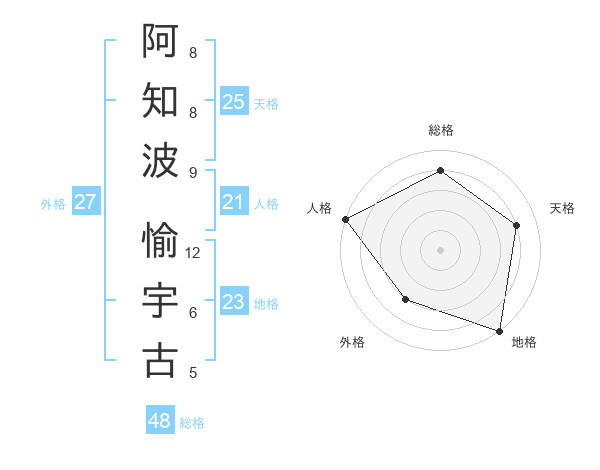 阿知波 愉宇古さんを姓名の画数から五運を鑑定
